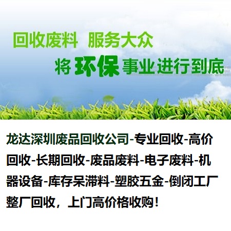 深圳市龍達(dá)再生資源回收有限公司誠信經(jīng)營,安全快捷,信譽(yù)可靠,專業(yè)技術(shù),滿足您對廢品回收價格咨詢的需求,是深圳地區(qū)大型的廢品回收公司,主要經(jīng)營:電子回收、塑膠回收,金屬回收,庫存呆滯料回收,機(jī)械設(shè)備回收、庫存積壓品回收等所有工廠、企業(yè) 業(yè)務(wù),擁有回收技術(shù)精湛的團(tuán)隊,派專業(yè)人員上門免費(fèi)評估報價,免費(fèi)為工廠清理場地,可簽定合同,達(dá)成長期良好的合作關(guān)系。